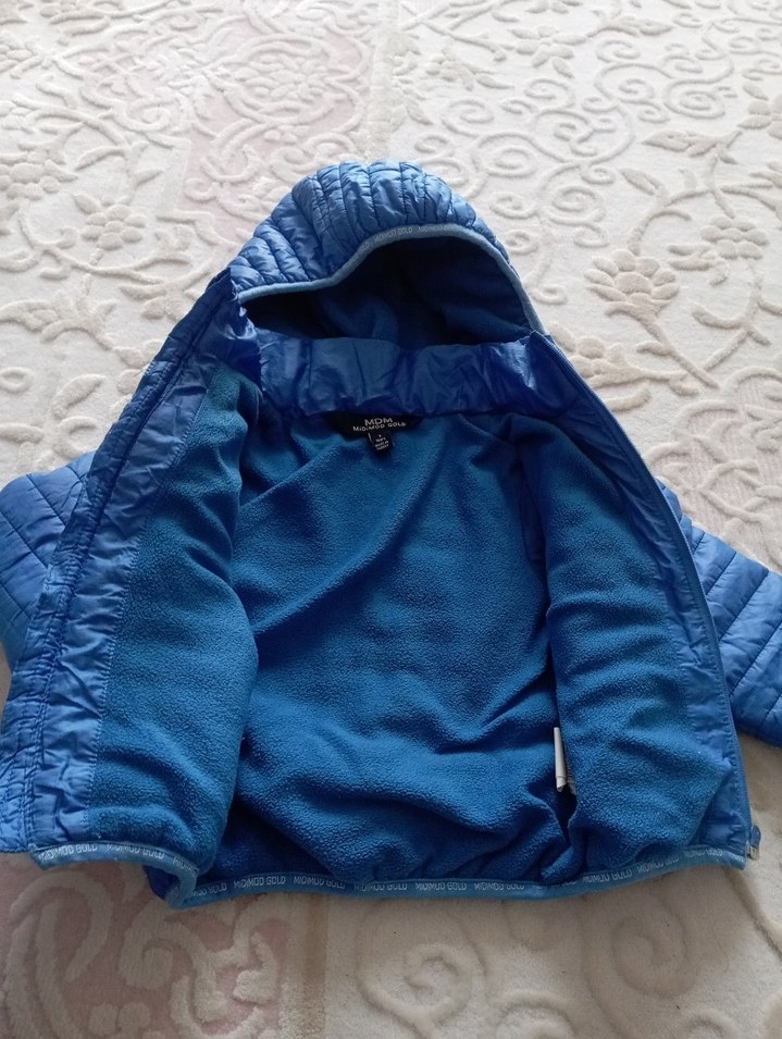 Parlak mavi renkte, fermuarlı ve yumuşak polar iç yüzeyli, erkek çocuklar için dar kesim mont.