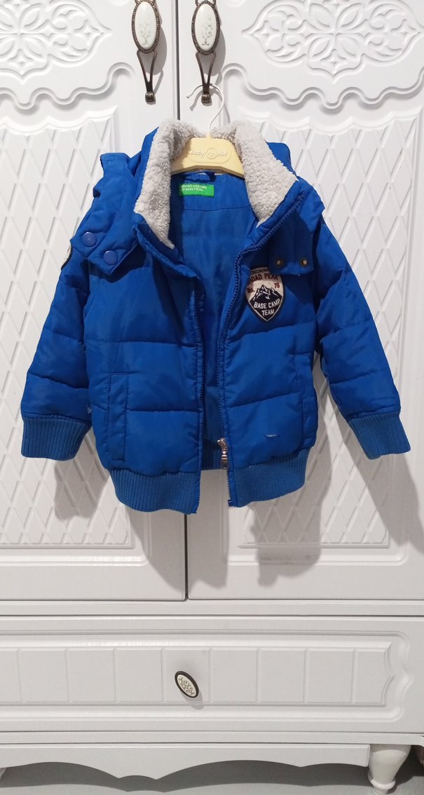 3/4 yaş boy 42 cm eni 36 cm Mavi renkli, fermuarlı , rahat kesim erkek çocuk montudur, günlük sokak stili için uygundur. ışık kaynaklı renk koyu çıkmıştır