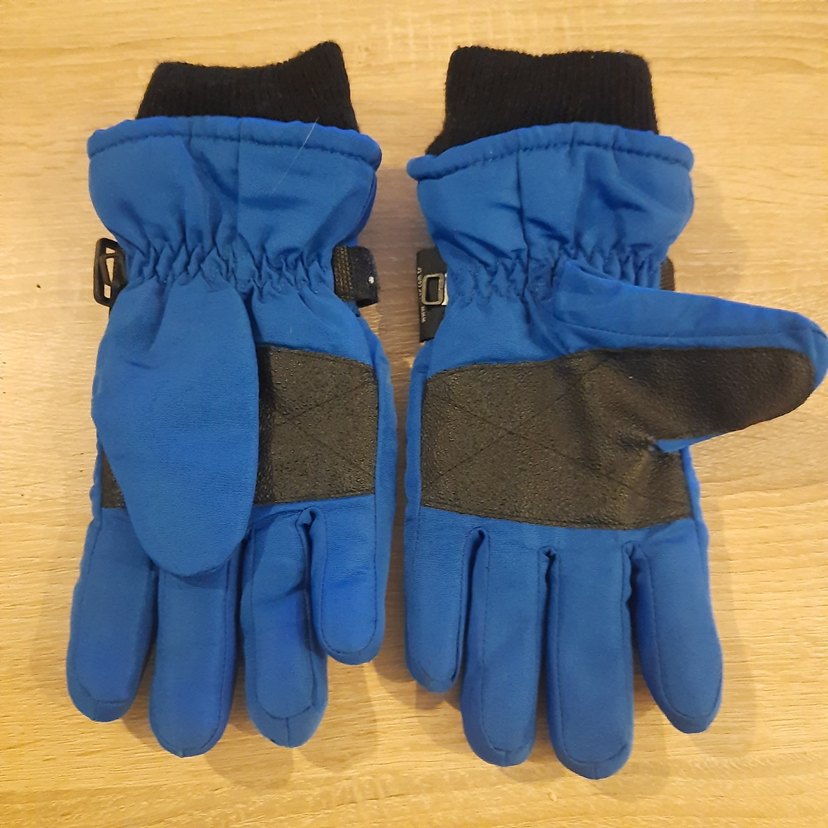 Mavi renkli, disi sentetik ici polarli yumuşak dokulu, bilekleri iyice kapatan kar ve soguk gecirmeyen L beden erkek çocuk eldivenleri, Velcro bantlı, sade sokak tarzında tasarlanmıştır.
