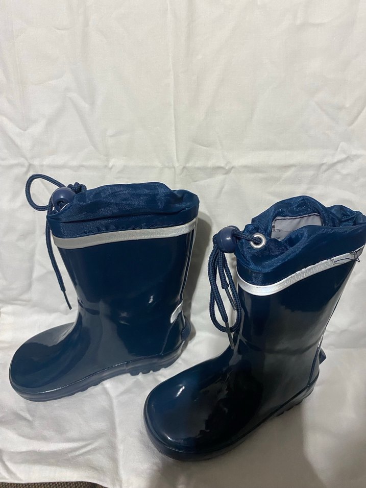 Erkek çocuklar için koyu mavi kauçuk botlar, cırt cırtlı kapama ve bağcıklı üst kısmı ile güvenli kullanım sağlar. Desensiz tasarıma sahiptir.