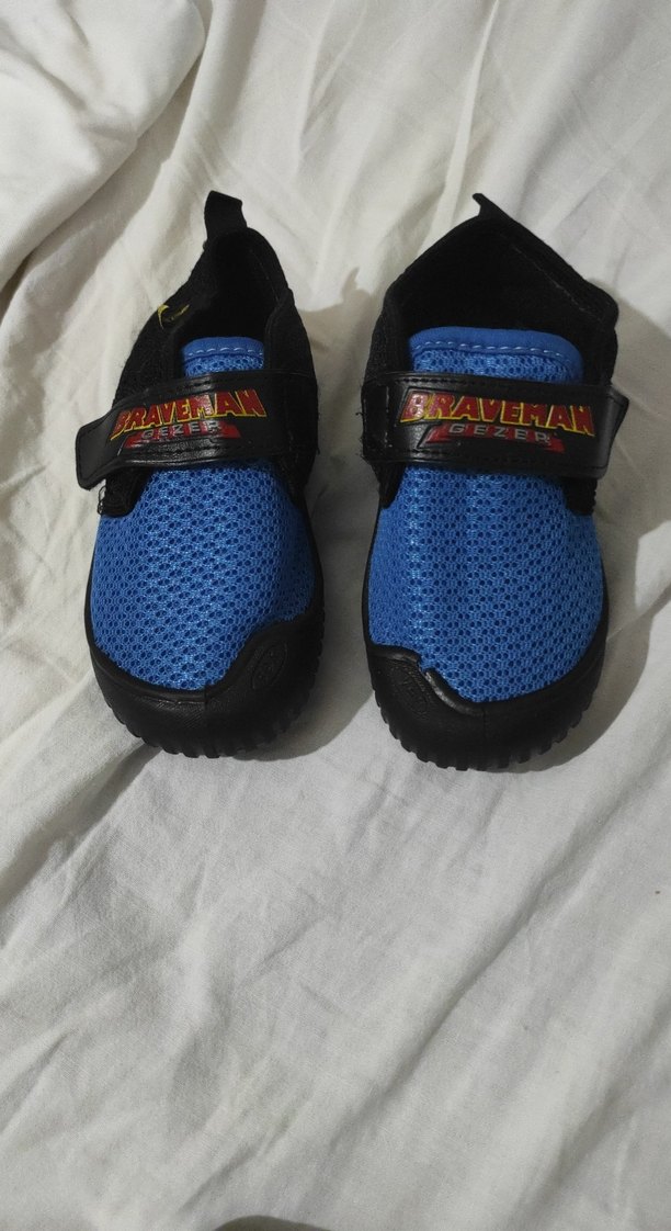 Mavi renkli, baskılı desenli ve kaymaz tabanlı erkek çocuk ev patiği. Velcro bantlarla kolay kapanır, biker tarzı şık görünüm sunar. ️
