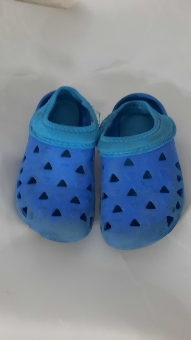 2 yil kullanırsınız.. numarası büyüyor Mavi renkli, kauçuk malzemeden yapılmış, üçgen desenli ve cırt cırtlı erkek çocuk terliği. Sokak stili için uygun.