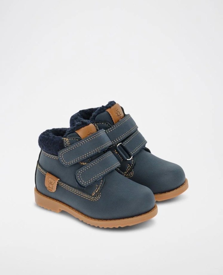 Mavi renkli, kemerli bantlı, lastik malzemeden yapılmış erkek çocuk botu. Yumuşak iç astar ve sağlam tabanıyla sokak modasına uygun.