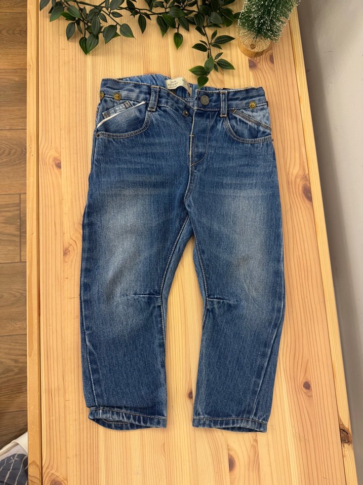 Mavi kot pantolon, regular fit ve tokalı detaylarla renkli ve rahat bir tarz sunar.