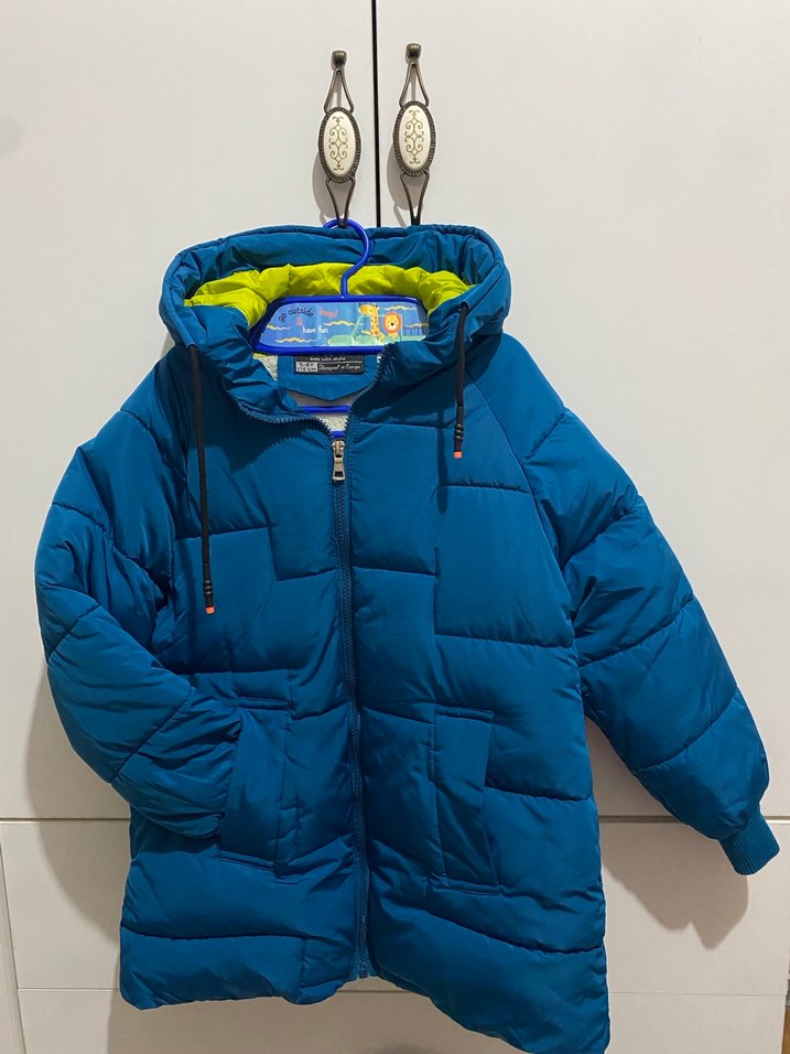 Mavi içi kürklü erkek/kız çocuk montu hiç kullanılmadı.5-6 yaş
