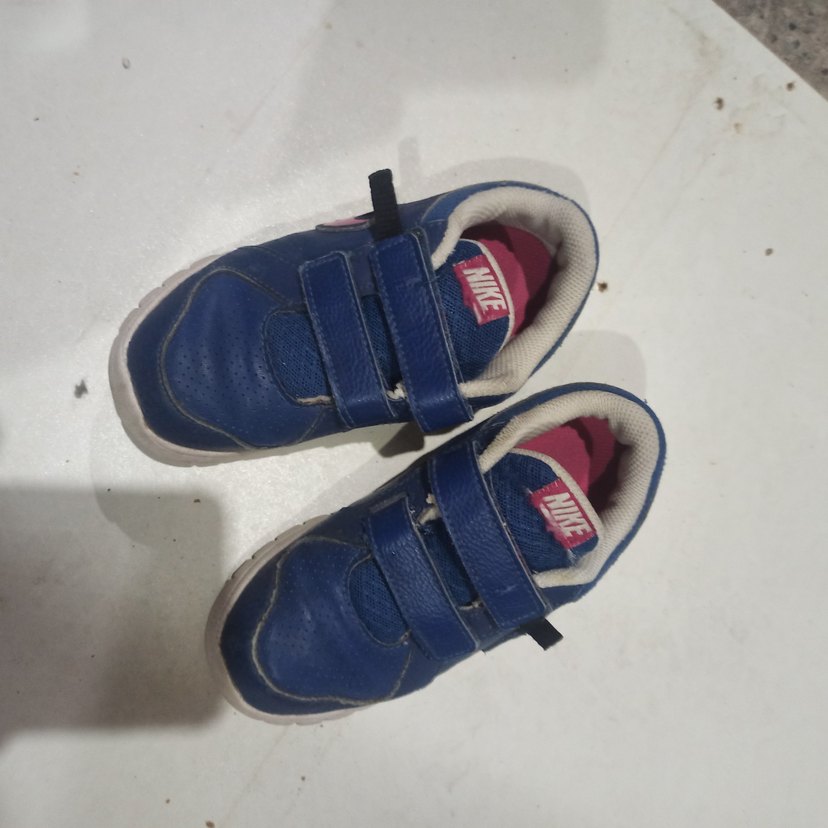 Velcro bantlı, kauçuk tabanlı mavi erkek çocuk spor ayakkabısı. Renkli ve rahat, günlük sokak stili için uygun. Nike logosu dil kısmında.