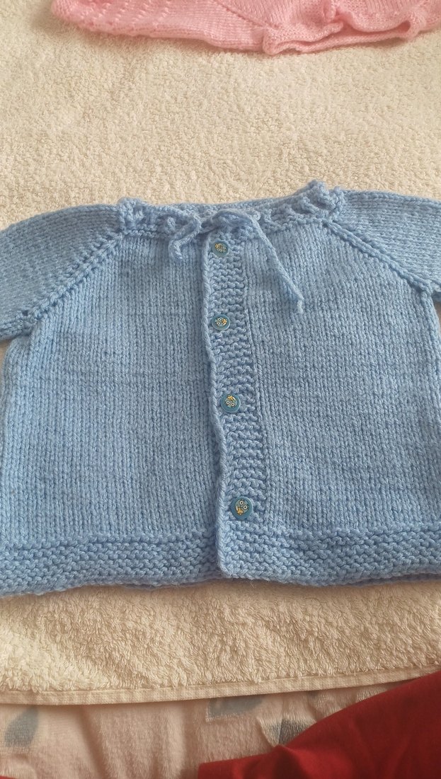 Mavi renkli, örgü erkek çocuk hırkası, bol kesim ve uzun kolludur. Önünde düğmeler ve yakada bağcık detayı bulunur. fiyat 250