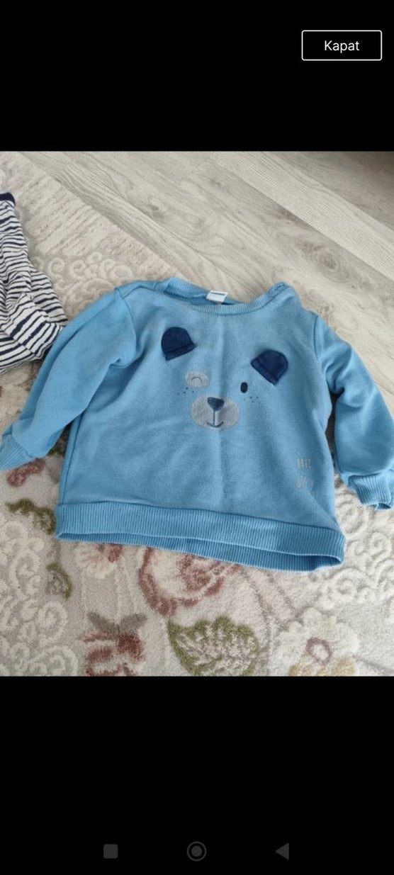 Mavi renkli, uzun kollu, bol kesim erkek çocuk sweatshirtü. Yuvarlak yaka ve yumuşak dokuda, ayıcık yüzü baskısı ve kürk detaylı kulaklarla sokak stili için uygun.