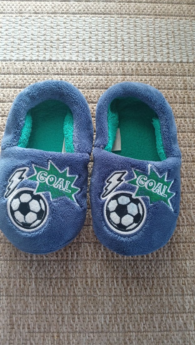 Renkli işlemeli futbol desenli, cırt cırtlı mavi erkek çocuk polar ev terliği, yumuşak ve sıcak kumaştan üretilmiştir. ⚽