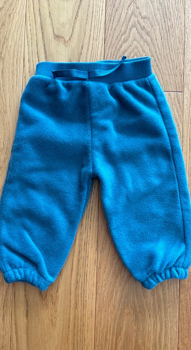 Mavi renkli, bol kesim erkek çocuk polar pantolon. Cırt cırtlı bel ve lastikli paçalar rahat kullanım sağlar.