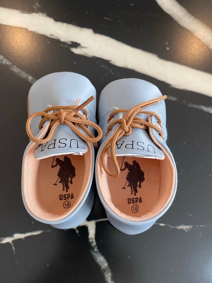 U.S polo assn. ayakkabının deformasyonu yoktur. Pastel mavi kauçuk malzemeden, baskılı desenli ve USPA logolu erkek çocuk sneakers, rahat ayakkabı