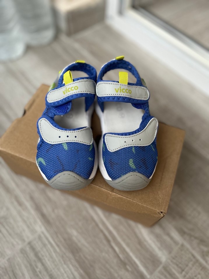 Mavi erkek çocuk sandalet, kolay bağlanan cırt cırt bantlara sahiptir. Dayanıklı kauçuk tabanlı, rahat sokak tarzı için uygundur. Hızlı kuruma özelliği olan bir kumaş. Plaj kullanımına uygun.