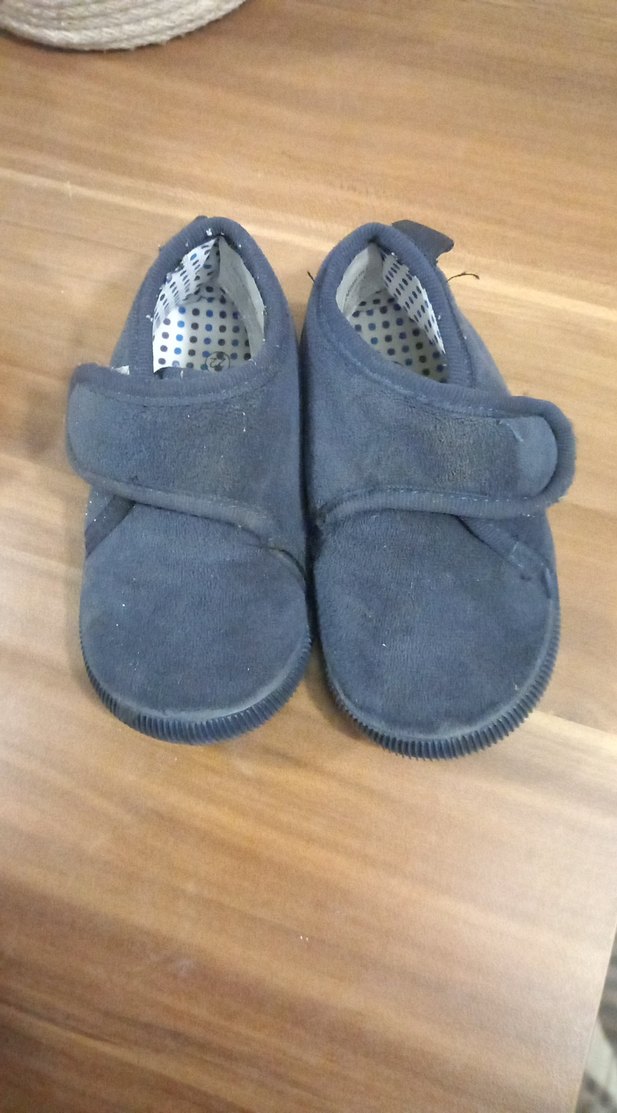 Mavi renkli erkek çocuk terlikleri, kolay kullanım için Velcro bantlı ve dayanıklı kauçuk tabanlıdır. Düz ve desen içermeyen, yumuşak iç yüzeylidir.