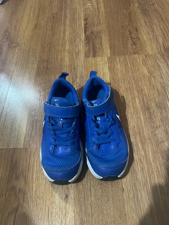 Mavi renkli, velcro bantlı, kauçuk tabanlı erkek çocuk spor ayakkabısı. Düz, renkli ve günlük sokak stili için uygun. 29.5 numara
