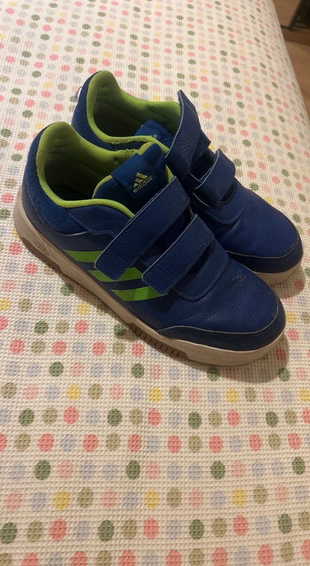 Mavi renkte, velcro bantlı ve kauçuk tabanlı erkek çocuk spor ayakkabısı, renkli batik deseniyle sokak stiline uygun. Defosu mevcut resimlerde görebilirsiniz.