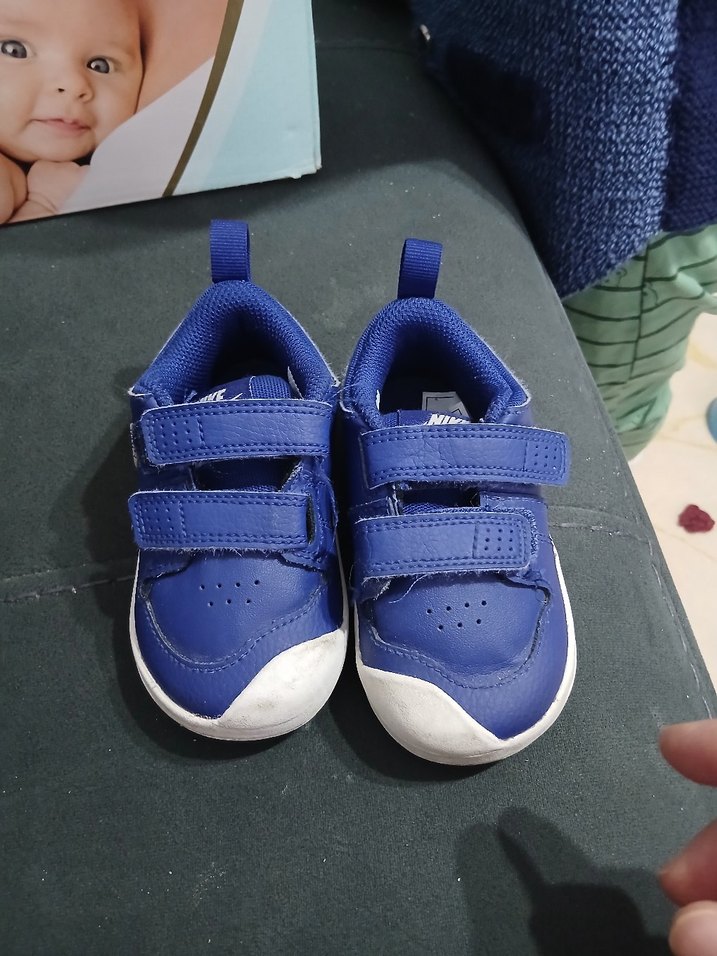 Mavi renkli, cırt cırtlı erkek çocuk spor ayakkabısı. Kauçuk malzemeden üretilmiş, sade ve renkli tasarıma sahip.