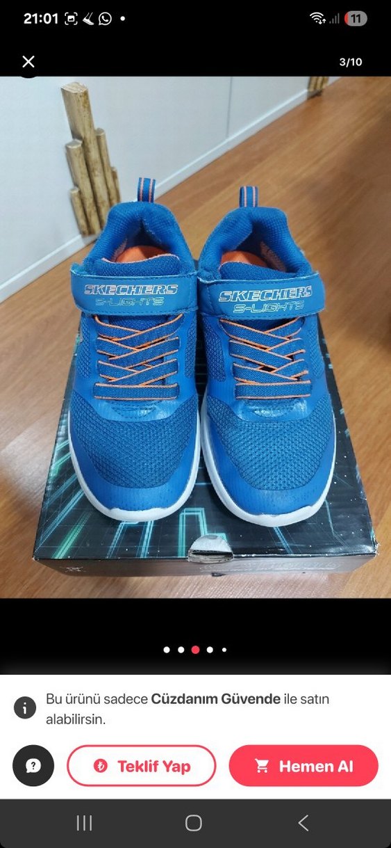 Mavi renkli, kauçuk tabanlı ve Velcro bantlı erkek çocuk spor ayakkabısı. Trendy casual sokak stili için rahat ve renkli Skechers tasarımı. yazın 3 ay giyildi ışıkları çıtçıtlı çıkınca üstündeki düğmeden sönüyor son fiyattır.
