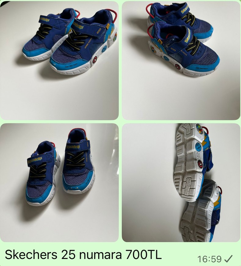Skechers marka, Mavi renkli, velcro bantlı erkek çocuk spor ayakkabısı. Kauçuk tabanlı, renkli detaylara sahip, trend sokak stili için uygun. Numara 25.