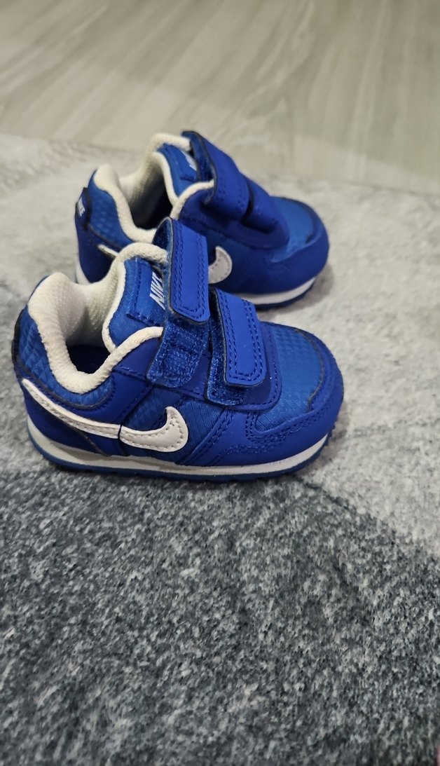 Mavi renkli, velcro bantlı ve kauçuk tabanlı erkek çocuk spor ayakkabısı. Sade sokak stili tasarımıyla rahat ve kullanışlıdır.