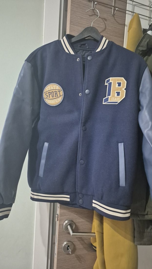 Düğmeli, bisiklet yaka ve regular fit özellikli erkek çocuk ceketi. Parlak mavi renk ve baskılı sportif detaylar içerir.