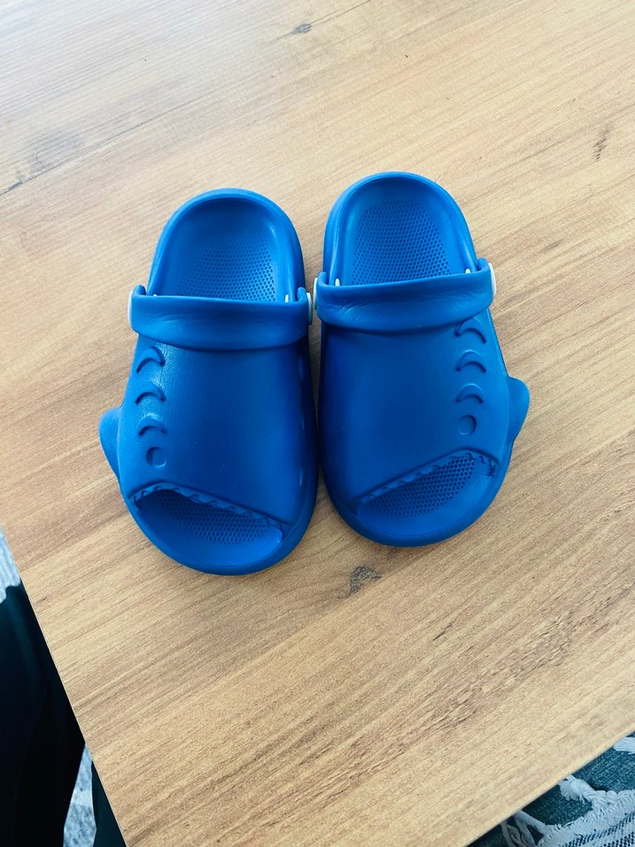 Dayanıklı kauçuk malzemeden yapılmış mavi erkek çocuk terlikleri, sade ve desensiz tasarıma sahiptir. Ayarlanabilir tokası ile rahat kullanım sunar.