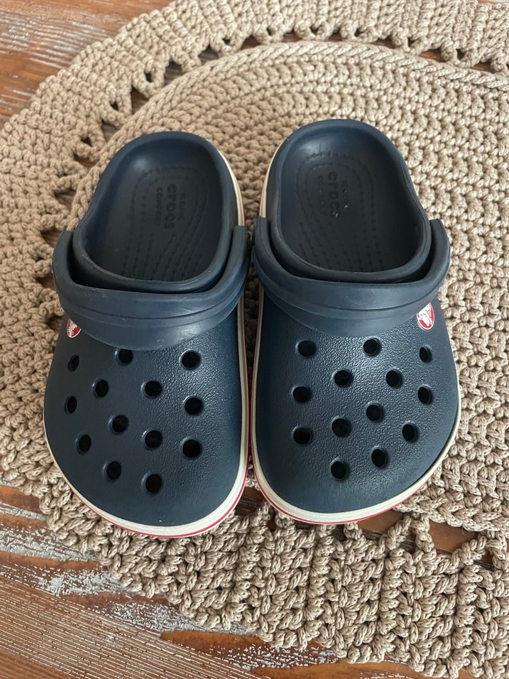 C7 23-24 numara uyumlu orjinal crocs terlik. Mavi renkli, lastik malzemeden yapılmış erkek çocuk terlikleri. Düz ve sade tasarımıyla rahatlık sağlar.