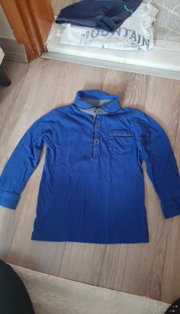 Mavi renk, düğmeli yakalı ve cep detaylı uzun kollu erkek çocuk gömleği. Rahat kesimi ve yumuşak, sıcak dokusu ile günlük sokak stiline uygundur. en 30 boy 43