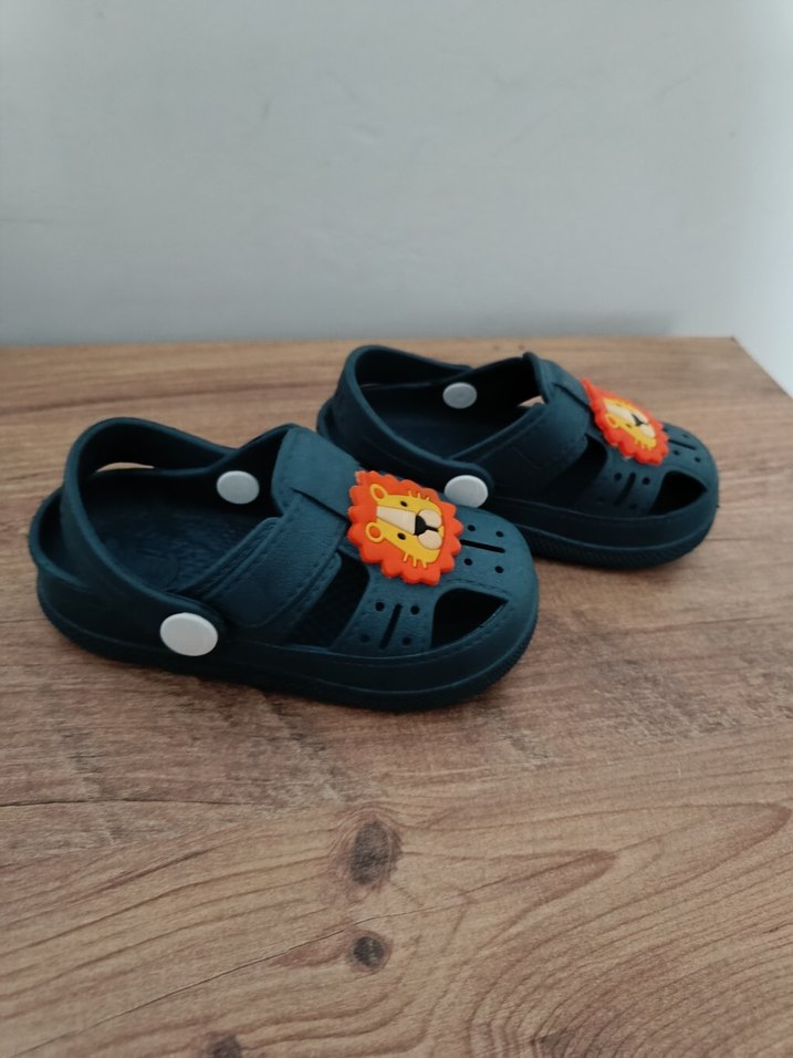 hiç giyilmemiş tertemiz Koyu mavi renkte, aslan baskılı erkek çocuk terliği. Velcro bantlı ve kauçuk malzemeden üretilmiştir. Sokak modası, bohem ve retro tarzına uygundur.