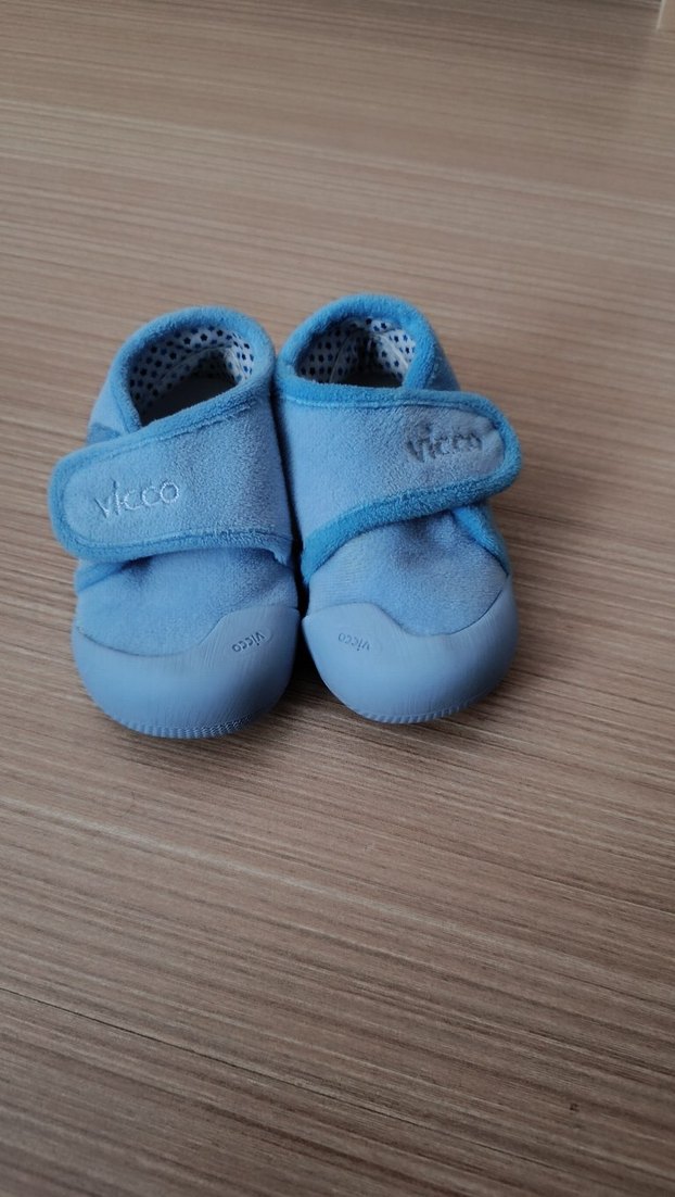 Mavi renkte, yumuşak kumaş üst kısmı ve kauçuk tabanlı erkek çocuk vicco ayakkabı. bir kez evde kuşlanıldı. küçük geldiği için satıyorum. ürün tertemiz