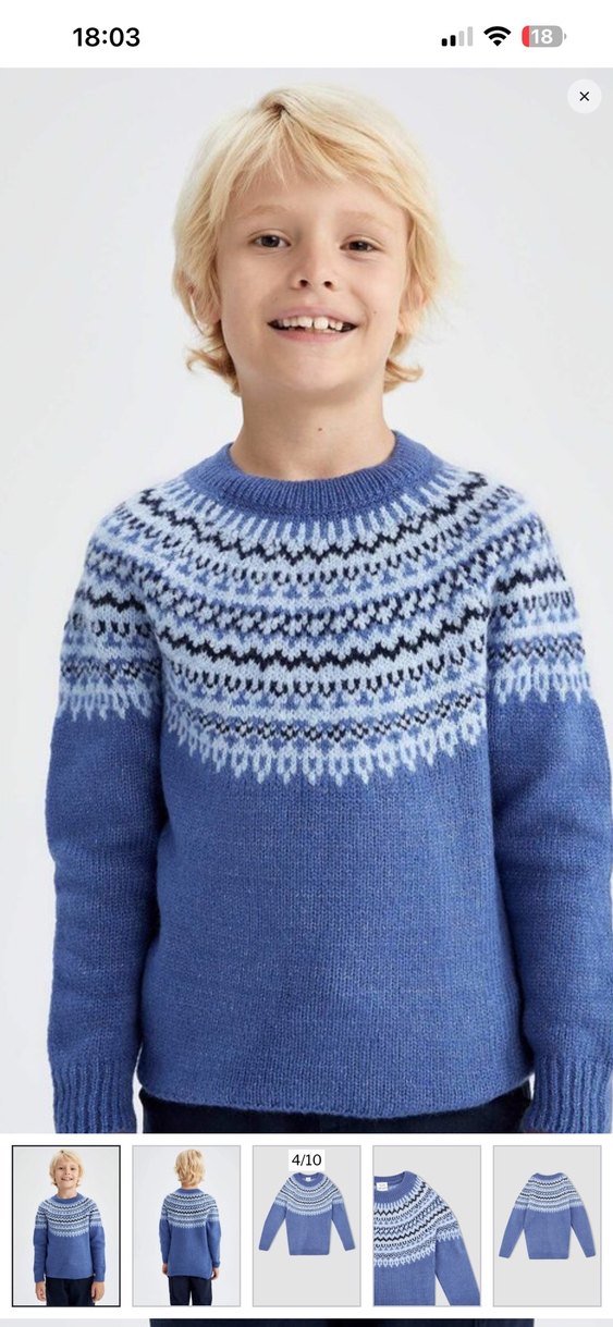 Yuvarlak yakalı, uzun kollu mavi erkek çocuk triko kazak. Gri desen detayları ve regular fit kesimi bulunur. Rahat kullanım için uygundur.