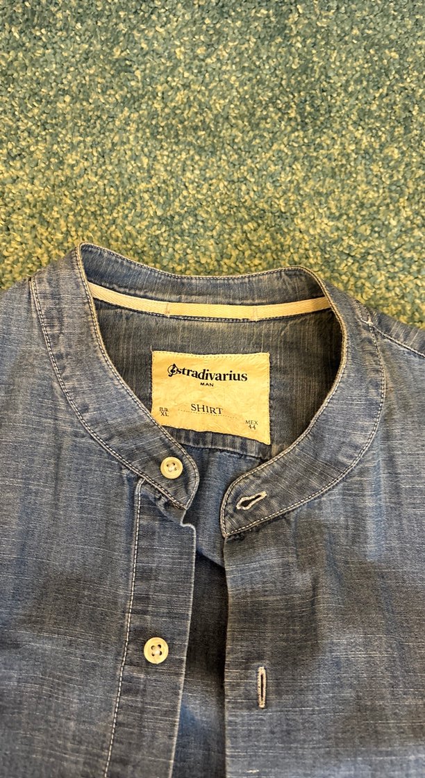 Bu erkek denim gömlek, düğmeli ön ve hakim yakalı tasarıma sahiptir. Gri renkte, düz ve uzun kollu, normal kesimdir. Günlük kullanıma uygundur.