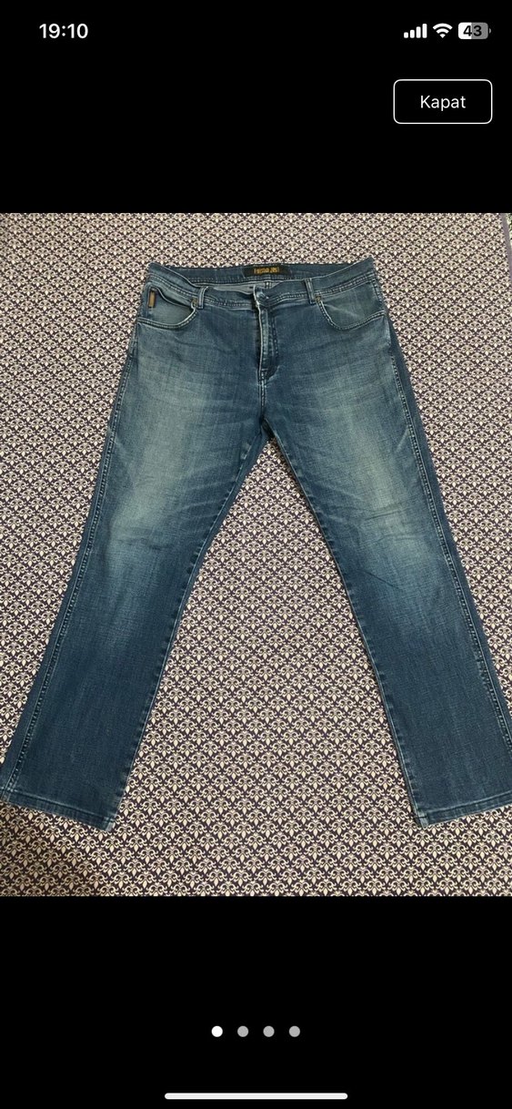 Gri mavi tonlarında, erkek denim jean. Orta boy, desen içermeyen, günlük sokak stili için uygun jean pantolon. bel düz olçü 47 cm bel çevresi 94-95 cm paça genisligi 20 cm dis bacak 103 cm esneme payi vardir.
