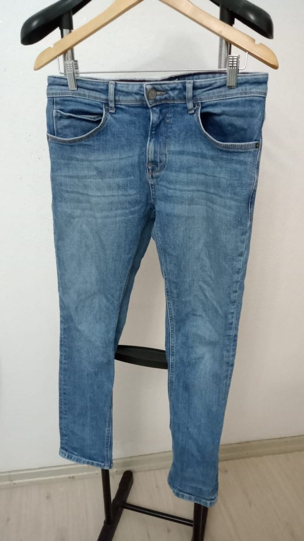 Mavi renkte, regular fit ve midi boyda erkek denim kot pantolon. Tokalı detay ve gündelik kullanım için desen içermeyen rahat tasarım.#koton#mango#zara#jean#kot#denim#slim#oysho#erkek#beymen#balmain#