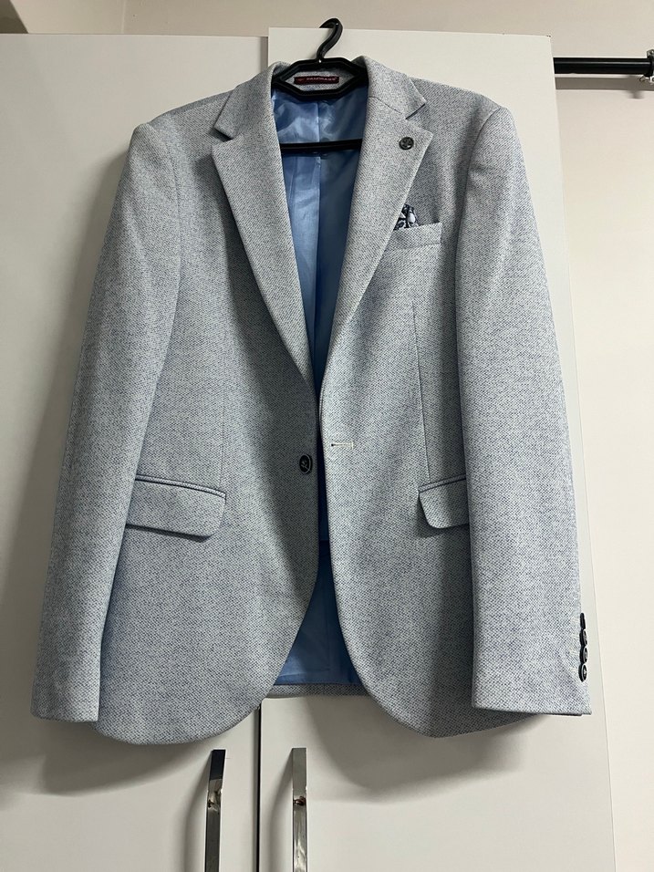 Bu gri erkek ceket, kesimli yaka ve düğmeli ön detaya sahiptir. Normal uzunlukta, uzun kollu ve regular fit kesimlidir, ofis ve günlük şıklık için uygundur.