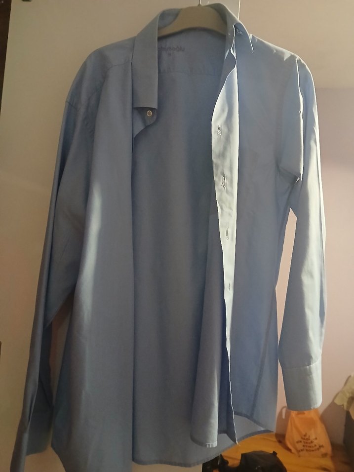 mavi gömlek , yakalı ve uzun kollu erkek gömleği. Düğmeli ve normal kesim, ipeksi kumaştan üretilmiştir. Ofis kullanımı için uygundur. ünisek