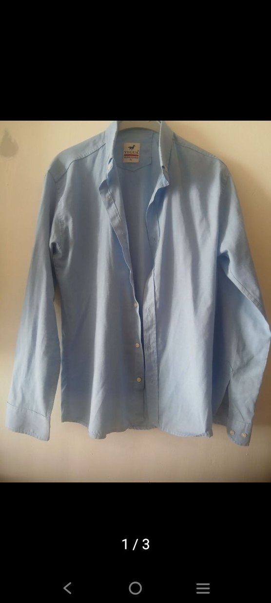 Pastel mavi renkte, uzun kollu ve yakalı erkek keten gömlek. Düzenli kesim, düğmeli ön ve rahat kumaş ile ofis ve günlük kullanıma uygundur. XL bedendir. Ölçüleri; en 50, boy 73 cm'dir. Herhangi bir sorunu bulunmamaktadır.