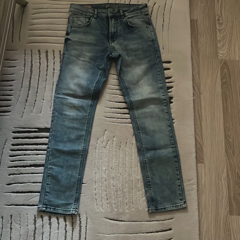 Mavi&gri tonlarında, regular fit kesime sahip erkek denim pantolon. Rahat ve sade deseniyle günlük sokak tarzına uygundur. Normal boyda ve desen içermez.