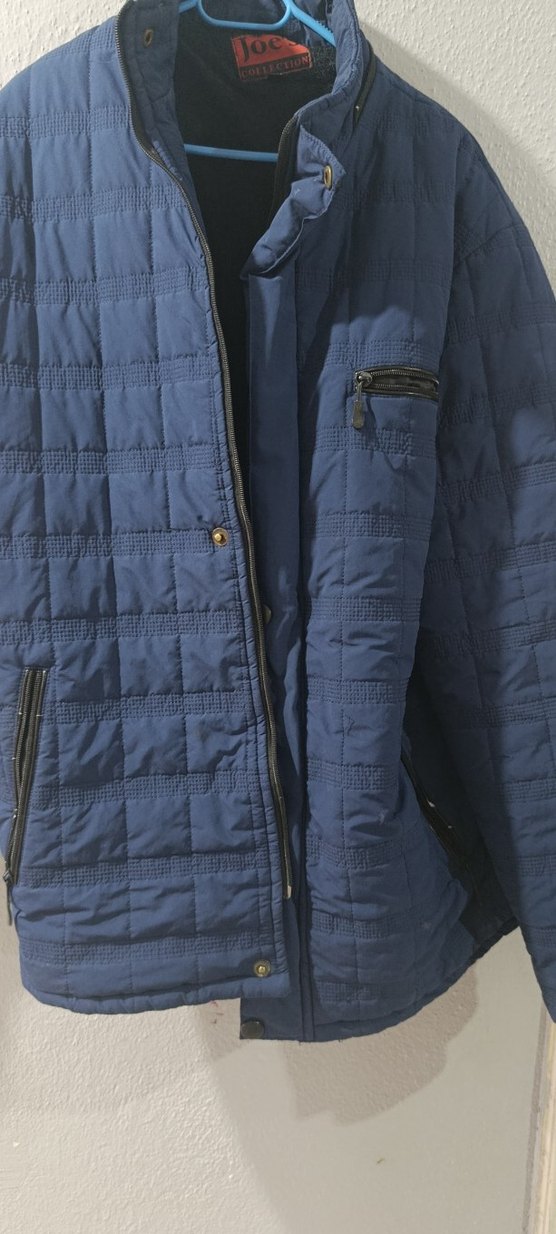 Mavi renk, sentetik kumaştan üretilmiş, fermuarlı cepleri ve kırmalı yakası olan, regular fit uzun kollu erkek midi mont.