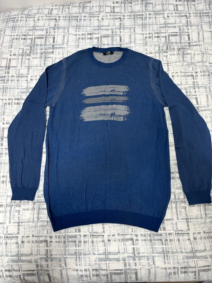 Mavi Kiğılı erkek, uzun kollu, bisiklet yaka erkek triko kazak. Önünde gri fırça darbesi deseni bulunur. Günlük kullanıma uygundur.