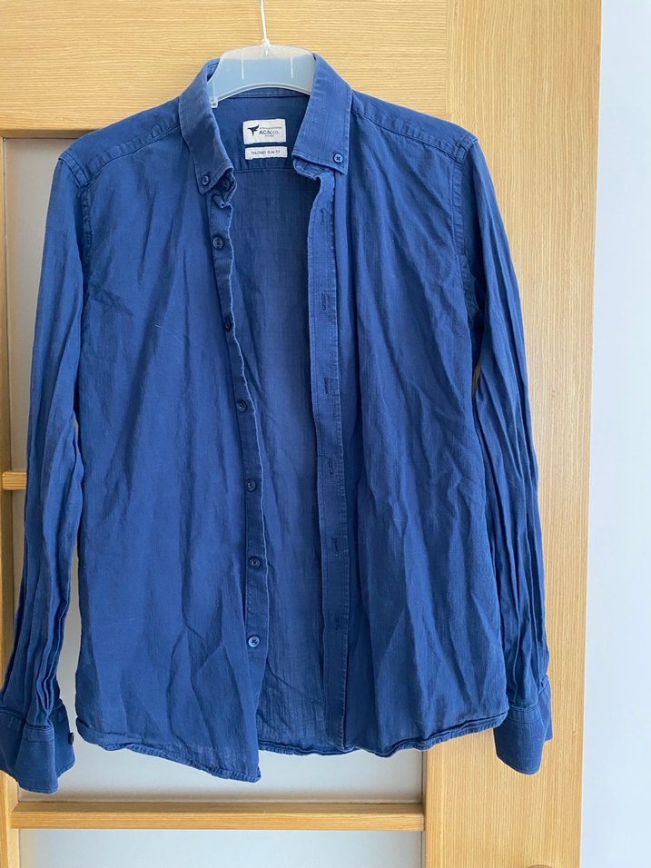 Bu erkek keten gömlek düğmeli, uzun kollu ve yakalıdır. Normal kesim olup parlak mavi renktedir, günlük ve sokak tarzı için uygundur.
