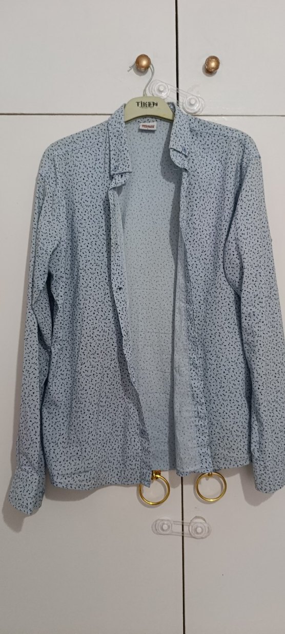 mavi renkli keten erkek gömlek, uzun kollu ve çıtçıtlı, normal kesim ve notched lapel yakalıdır. Günlük kullanıma uygun rahat bir sokak stili sunar.