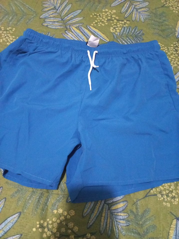 Mavi renkli erkek yüzme şortu, midi boy ve bol kesimdir. Düz desensiz, rahat ve şık bir plaj şıklığı sunar. yeni 1 kes kullanıldı