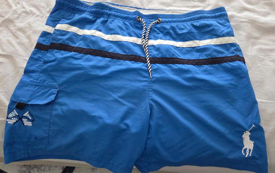 Fermuarlı ve bağcıklı, parlak kumaştan mavi erkek yüzme şortu. Basit çizgili, rahat ve şık, plaj ve sokak stiline uygun. 36 38 40 beden uyumludur.