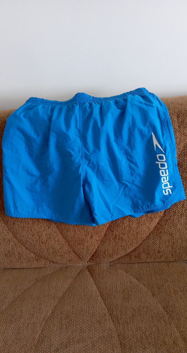 Mavi renkli, bol kesim erkek mini yüzme şortu Velcro kapamalı. Düz ve sokak stiliyle plaj için uygundur. Marka: Speedo.