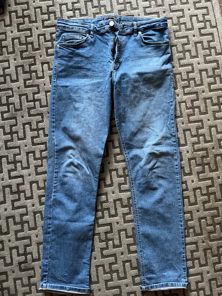 Mavi renkte, normal kesim ve normal boyda, tokalı detaylı erkek kot pantolon. Günlük kullanıma uygun ve desensiz tasarım. 36/32 beden ölçüleri fotoğraflarda nevcut