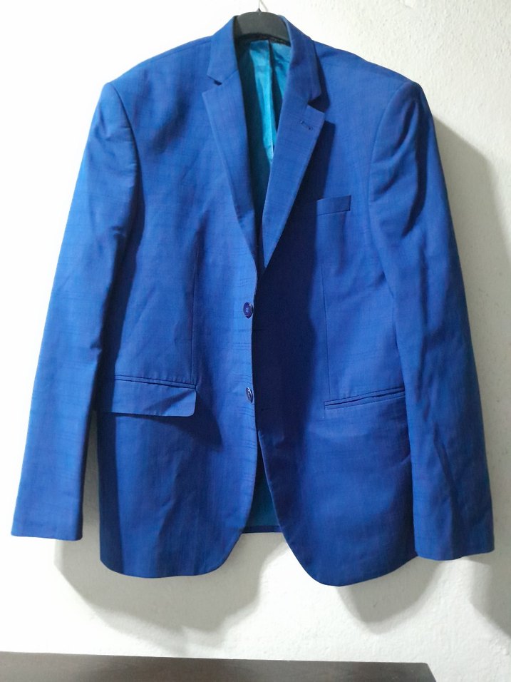 Mavi renkte, düğmeli ve kesimli yakalı erkek ofis ceketi. Regular fit, uzun kollu ve parlak dokusuyla iş ortamına uygundur. Trend belirleyenler için ideal..