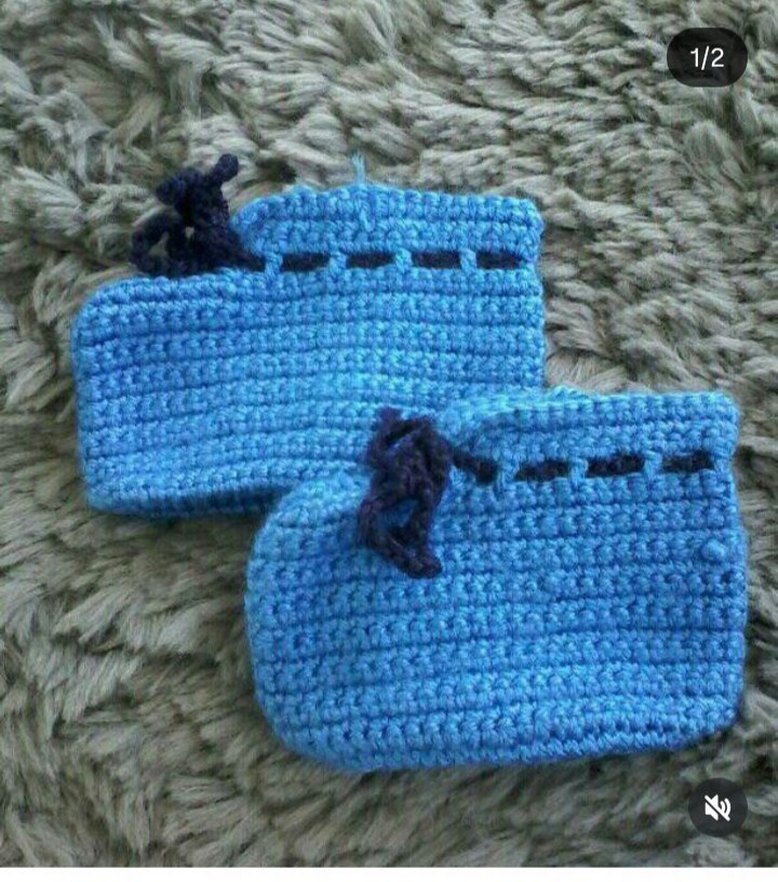 Mavi Erkek Örgü Bebek Patik