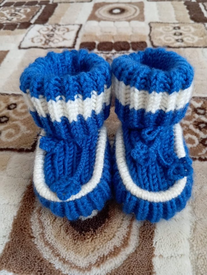 Mavi Erkek Örgü Bebek Patik