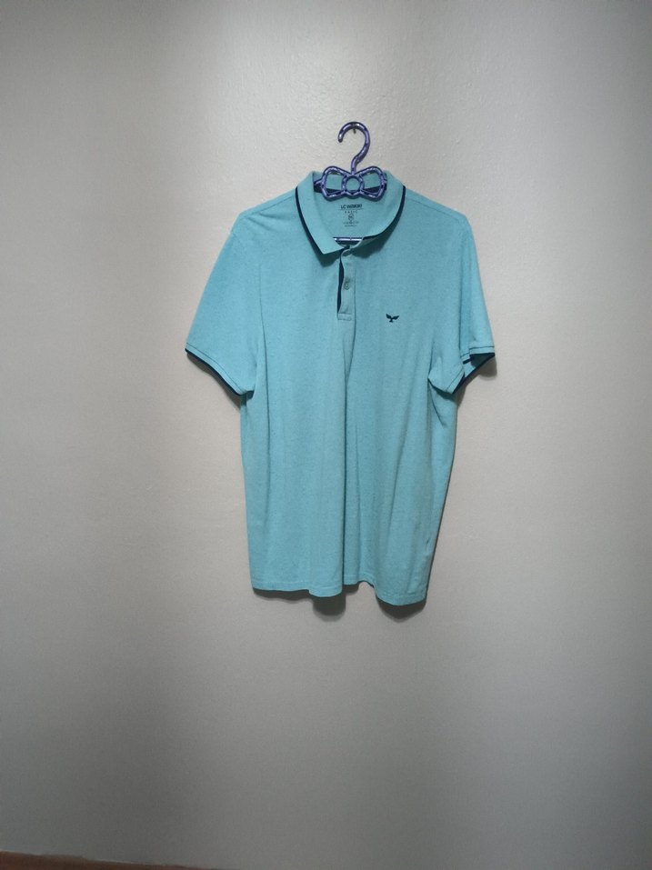 Mavi renk, yakalı ve kısa kollu erkek polo tişörtü, rahat kalıbıyla günlük ve sokak stiline uygun.