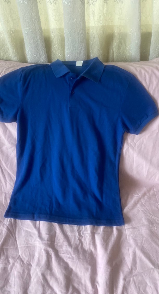 Bu erkek polo tişört, yakalı ve kısa kollu, vücuda oturan kesime sahiptir. Parlak mavi renkte olup, rahat sokak stili için yumuşak ve düzgün dokuludur.